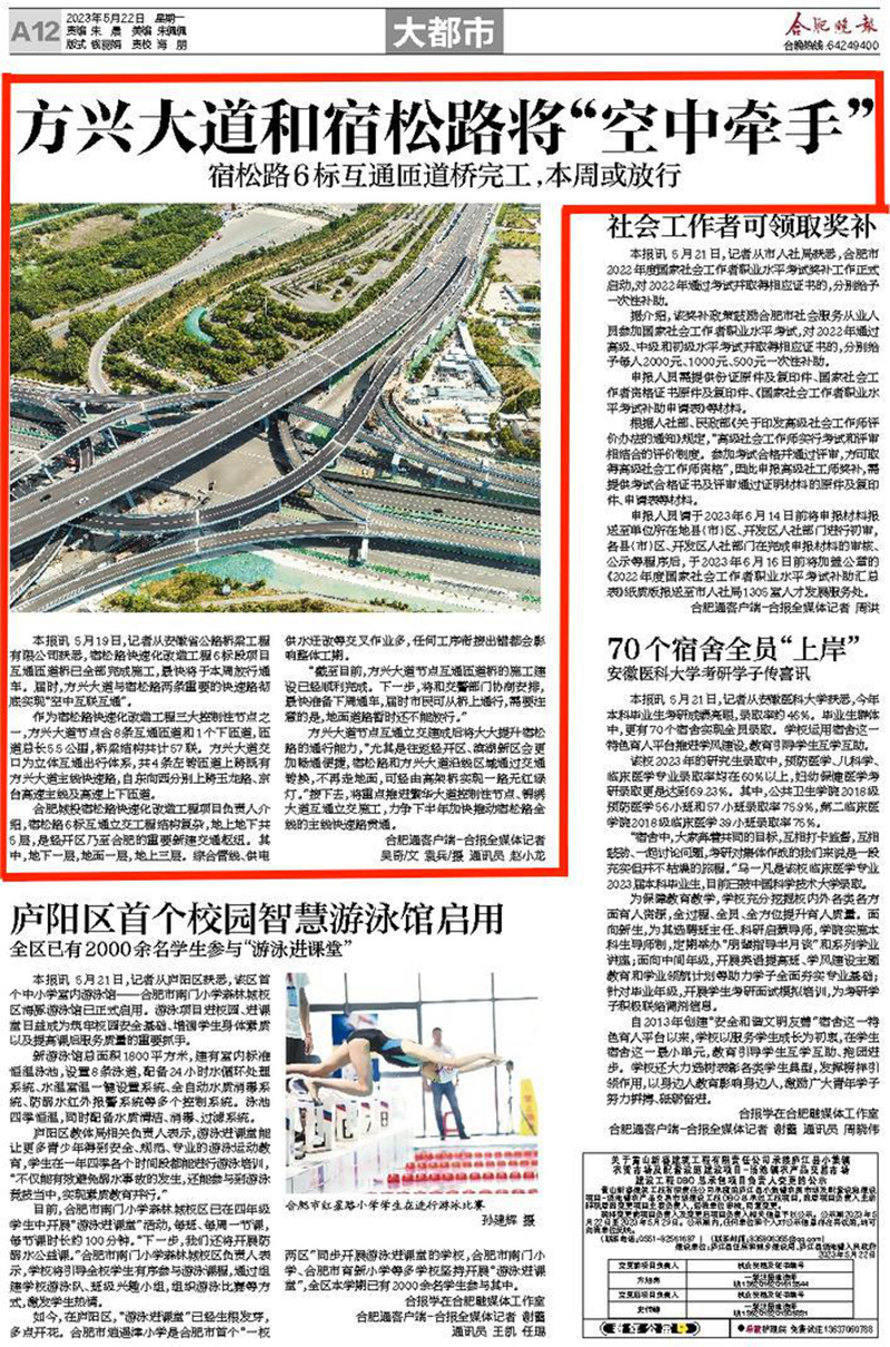 近日,合肥新聞聯(lián)播、《合肥晚報(bào)》聚焦宿松路項(xiàng)目建設(shè),深入報(bào)道項(xiàng)目當(dāng)前建設(shè)情況。