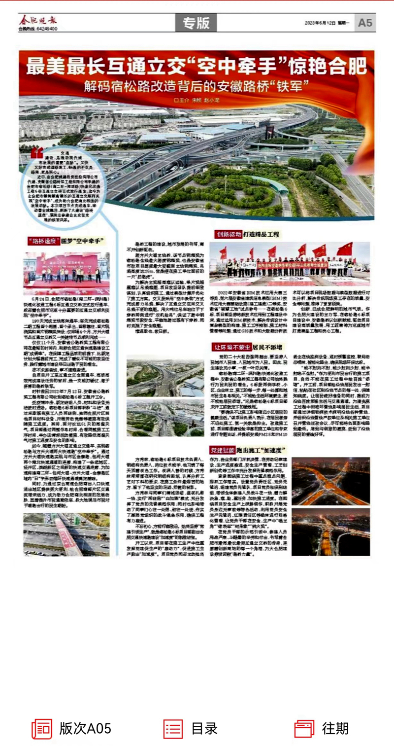 【名媒聚焦】合肥晚報(bào):最美最長互通立交“空中牽手”驚艷合肥 解碼宿松路改造背后的安徽路橋“鐵軍”