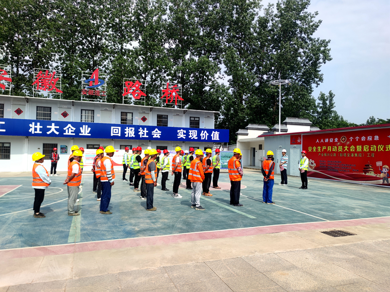 項(xiàng)目部堅(jiān)持一手抓安全、一手抓生產(chǎn),以“兩不耽誤、兩相促進(jìn)”為宗旨,加大宣傳力度,力爭(zhēng)實(shí)現(xiàn)“1+1>2”的效果。6月1日,項(xiàng)目部聯(lián)合霍邱縣交通局舉行了安全宣誓暨全國(guó)安全月活動(dòng)啟動(dòng)儀式,參觀安全月主題圖片展、學(xué)習(xí)安全生產(chǎn)相關(guān)知識(shí)特別是安全生產(chǎn)“八安八險(xiǎn)”等內(nèi)容,監(jiān)理單位、項(xiàng)目管理人員、勞務(wù)隊(duì)伍代表等30余人還進(jìn)行了安全生產(chǎn)集體宣誓。5月,項(xiàng)目部組織召開勞動(dòng)競(jìng)賽啟動(dòng)儀式,結(jié)合項(xiàng)目進(jìn)度制定了競(jìng)賽活動(dòng)方案并及時(shí)宣貫、展開討論。同時(shí),在項(xiàng)目部及施工現(xiàn)場(chǎng)醒目位置懸掛橫幅23條,在公告欄張貼各班組施工進(jìn)度完成情況并動(dòng)態(tài)更新,營(yíng)造勞動(dòng)競(jìng)賽濃厚氛圍。設(shè)置安全圍擋及安全警示標(biāo)牌,保證進(jìn)度的同時(shí)落實(shí)安全制度。