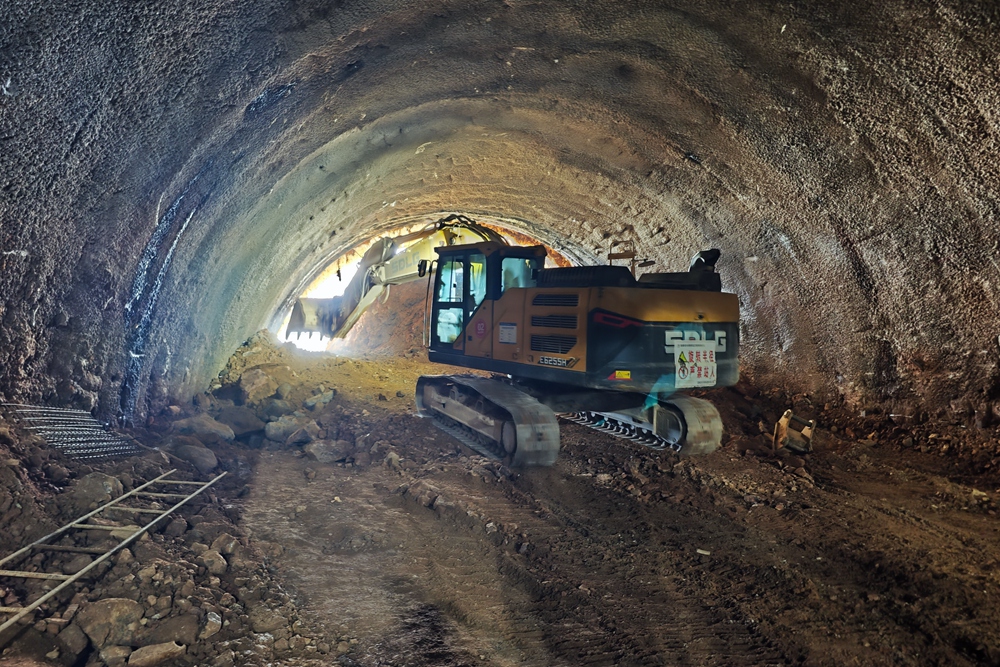 在江梓隧道左洞的內(nèi)部,也同時迎來了激動人心的一刻。隨著挖掘機(jī)挖掘產(chǎn)生的巨大轟鳴聲在隧道內(nèi)回蕩,最后一塊巖石被精準(zhǔn)地挖掘開來,陽光透過新開的洞口灑進(jìn)隧道,照亮了這片黑暗的空間。工人們紛紛停下手中的工作,歡呼雀躍,慶祝這一時刻的到來。江梓隧道左洞的順利貫通,為項目后續(xù)耙齒嶺大橋梁板運(yùn)輸及安裝提供了有力保證,為整體工程的推進(jìn)奠定了堅實(shí)基礎(chǔ)。江梓隧道右洞的施工也在緊張施工中,預(yù)計于8月份貫通。