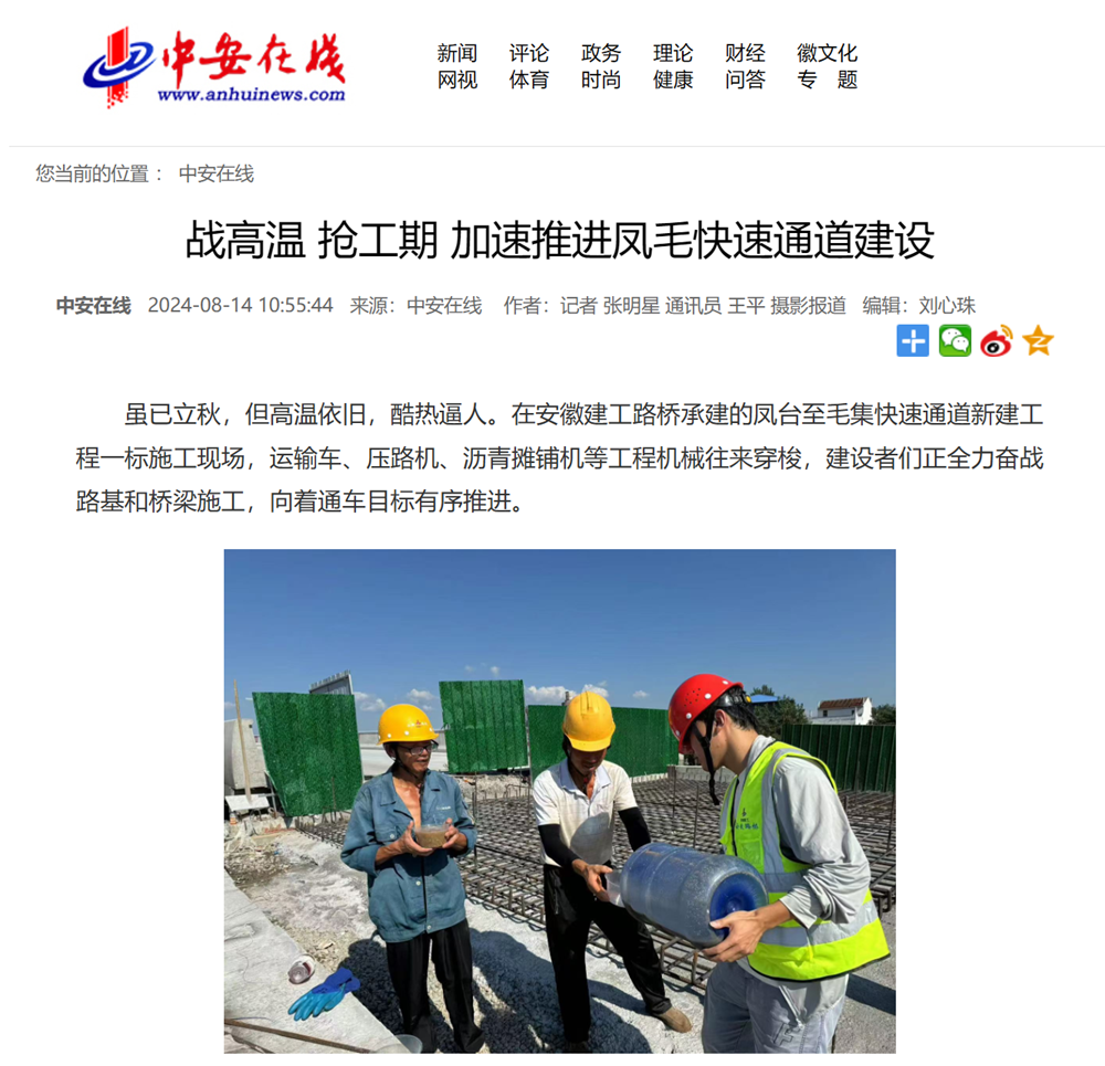 【名媒聚焦】中安在線、淮河早報:戰(zhàn)高溫 搶工期 加速推進(jìn)鳳毛快速通道建設(shè)